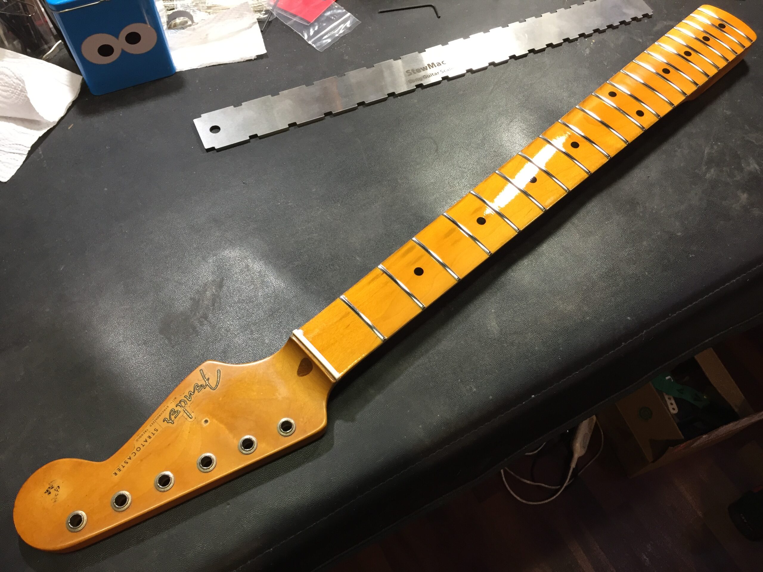指板修正をしなくてもいいくらいストレートなネックは別ですが、まあフレットが減っているくらい弾きこんだギターは少なからず波うっていたりすると思います。