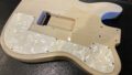 次にリアピックアップを12mmブリッジ側に移動しましたので、元々付いていたピックガードですとリア側に12mm隙間ができてしまいます。エスカッションも新しい物に交換しましたのでフィットするようにワンオフで製作しました。型を製作して、この型をテンプレートにしてルーターで平板を削って作りました。