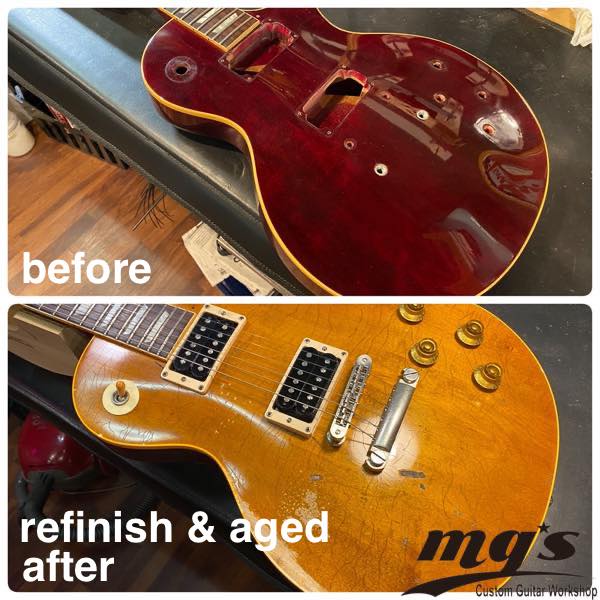 mg’s custom guitar workshopでは、ギター・ベースのリフィニッシュ、エイジング加工何でもご相談にのりますので、オフィシャルLINE ID : @mgs-shopもしくは、